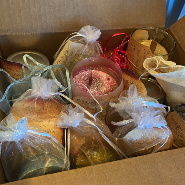 THE MINI BOX INCLUDES 7 MEDITATIONS AND PRAYER CANDLES SPECIALLY FORMULATED WITH SACRED ESSENTIAL OILS, NATURAL ORGANIC BEESWAX FROM THE HONEY FARMS AND THEY HAVE BEEN PRAYED OVER AND INSPIRED BY THE HOLY SPIRIT AS I HAVE SEEKED THE LORD FOR HEALING, GUIDANCE AND WISDOM IN THESE FORMULAS.